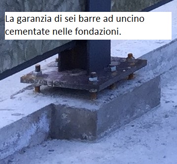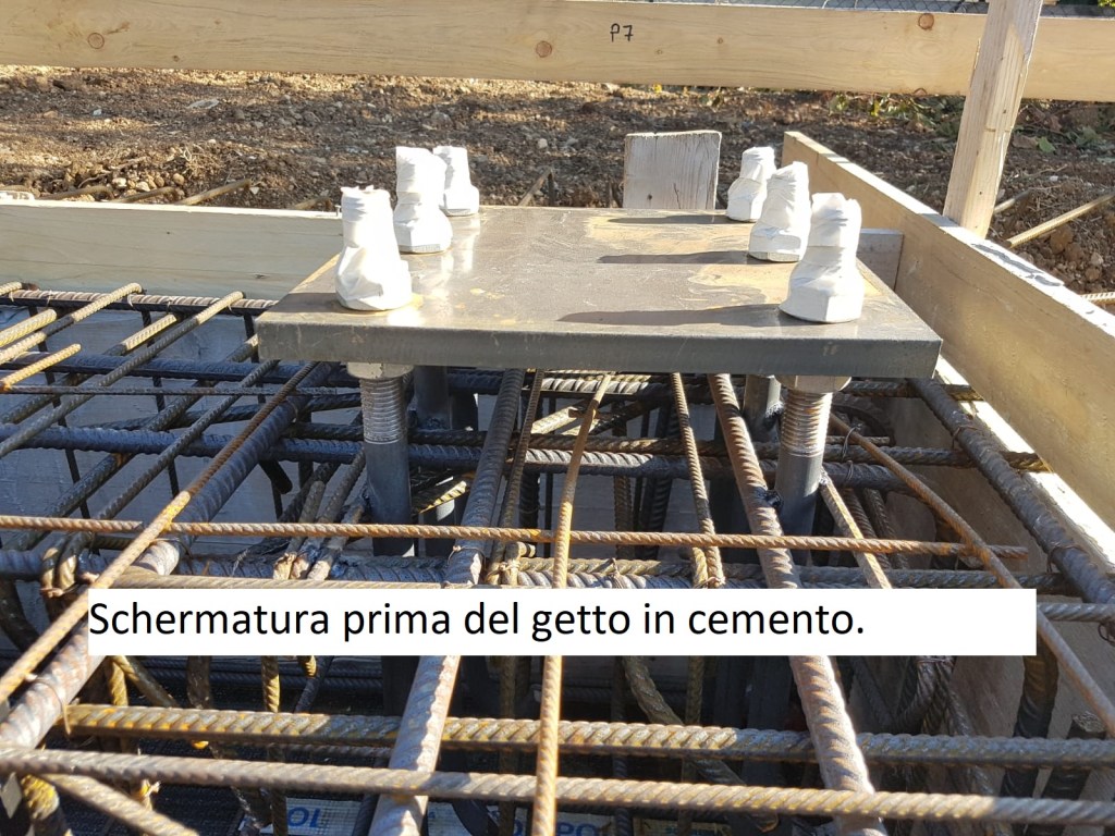 Nelle seguenti foto vediamo le fondamenta con una piastra (foto 1) alla quale verrà fissato un piantone della casa (foto 2)